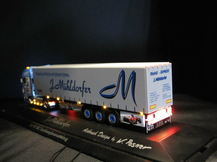 Dieses Fahrzeug wurde von mir entsprechend dem Originalfahrzeug der Spedition J. Mühldorfer umgebaut und beleuchtet. |