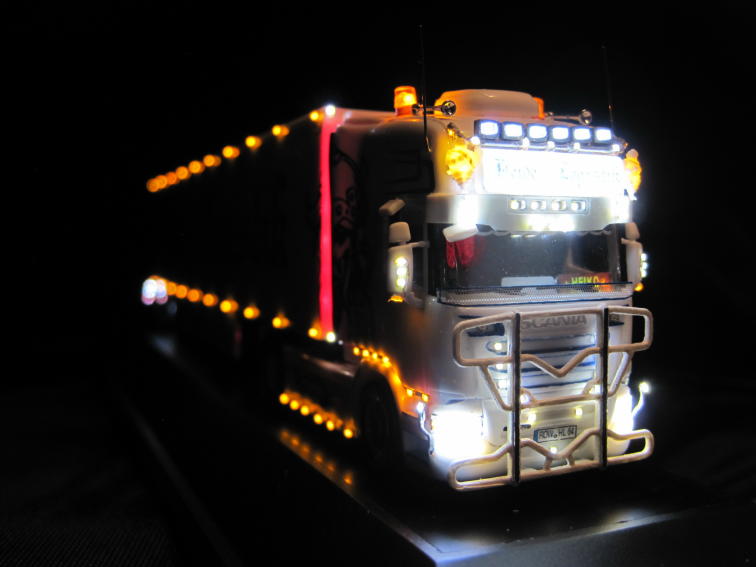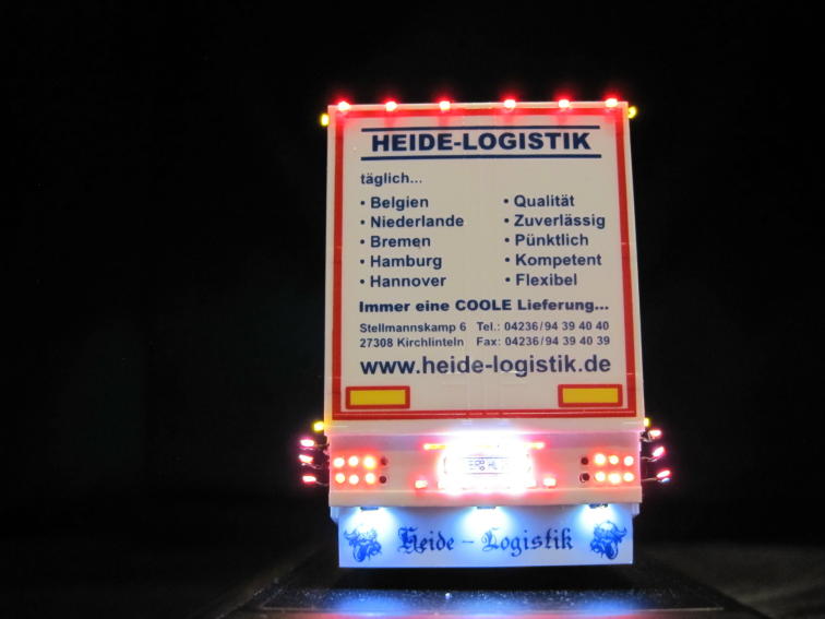 Dieses Fahrzeug wurde von mir entsprechend dem Originalfahrzeug der Spedition Heide Logistik umgebaut und beleuchtet.