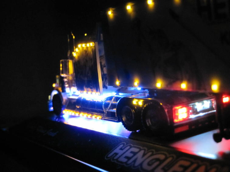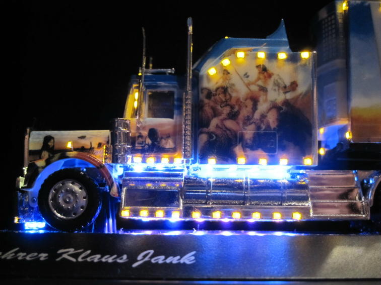 Dieses Fahrzeug wurde von mir entsprechend dem Originalfahrzeug des Kenworth-Showtruck umgebaut und beleuchtet. |