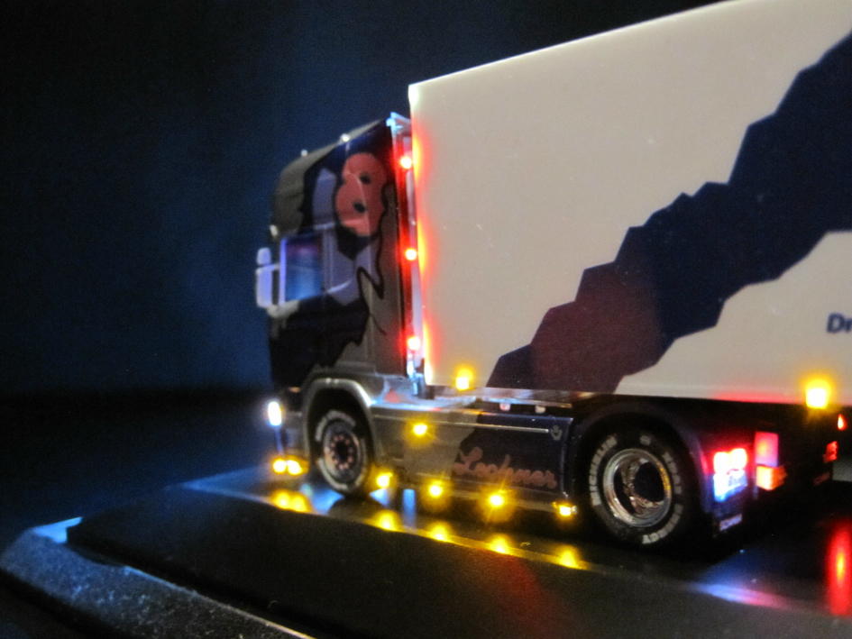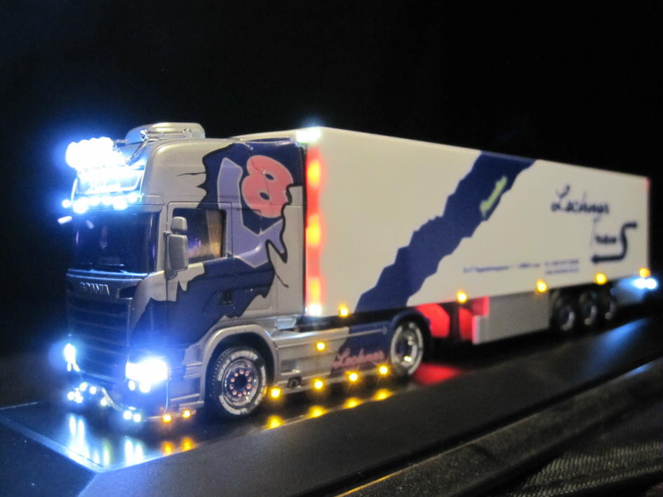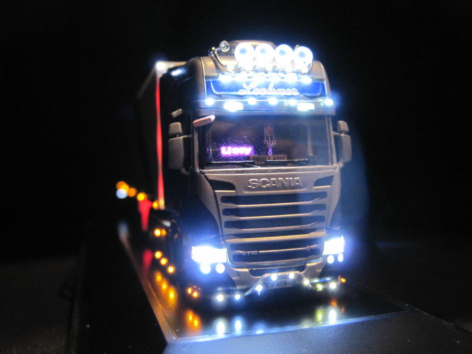 Abblend- und Rücklicht (ingesamt 6 LED), Dachscheinwerfer (6 LED), Nebelscheinwerfer (4 LED), seitliche Positionsleuchten (16 LED),