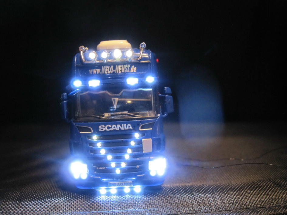 Abblend- und Rücklicht (ingesamt 6 LED), Dachscheinwerfer (6 LED), Nebelscheinwerfer (4 LED), seitliche Positionsleuchten (6 LED),