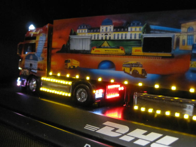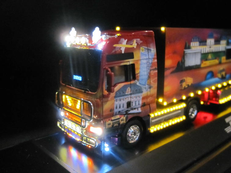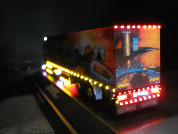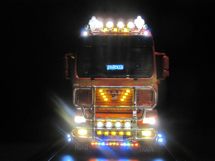 beleuchtete Michelin-Männchen (insgesamt 4 LED), beleuchtetes “Trucker”-Schild in der Windschutzscheibe (4 LED), Showbeleuchtung an der Stoßstange (22 LED). |