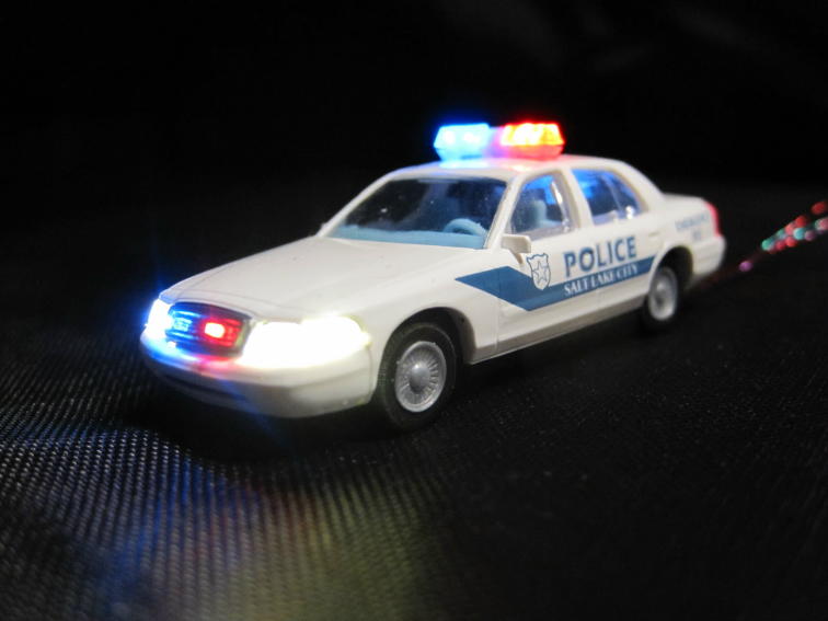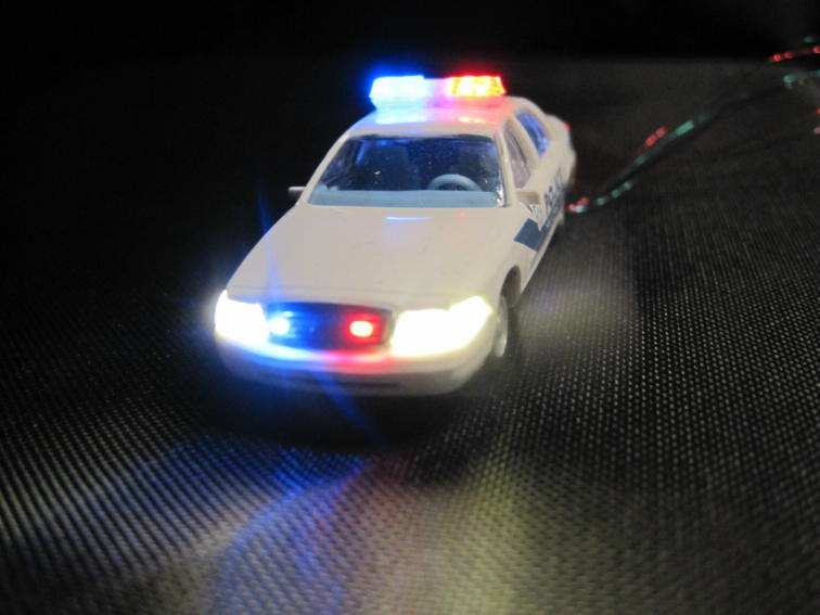Aufblinkendes Fernlicht (2 LED),Frontblitzer im Kühlergrill (2 LED),Dachwarnbalken (6 LED),Warnlicht in der Hutablage (2 LED), Blitzer in den Rückleuchten (2 LED).