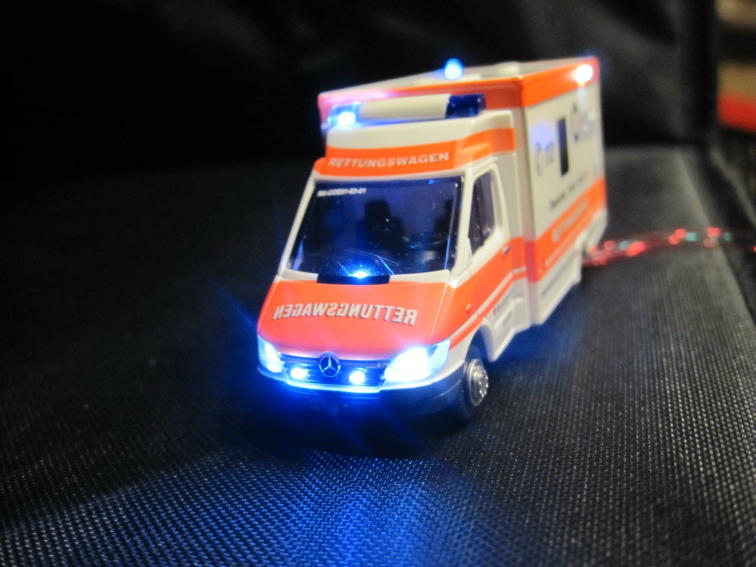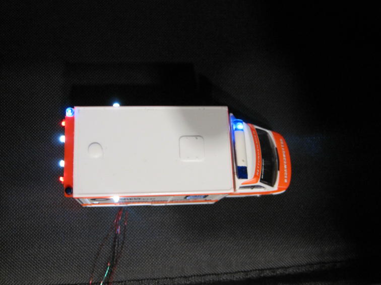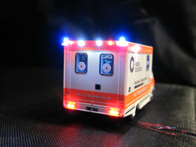Frontblitzer im Kühlergrill (2 LED), Frontblitzer in Windschutzscheibe (1 LED), Dachwarnbalken (2 LED), Dachheckblitzer (2 LED) |