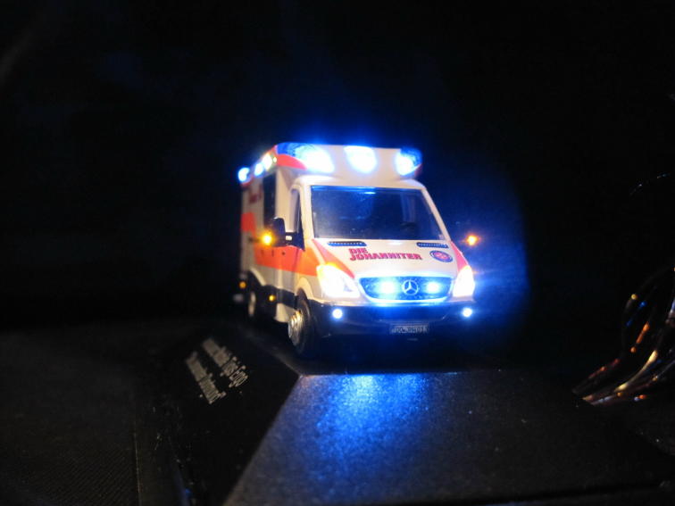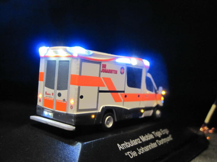 Dieses Fahrzeug wurde von mir entsprechend dem Originalfahrzeug beleuchtet. Für die Blinkleuchten in den Spiegeln wurden LED der Baugröße 0201 (0,6 x 0,3mm) verwendet.