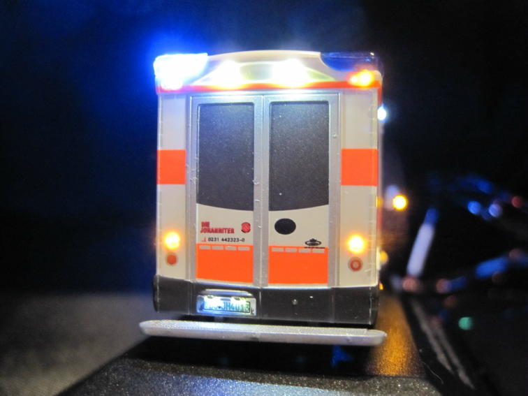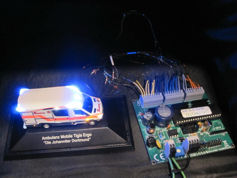 Der Lichtcomputer von Meier Modellbau wurde von mir so programmiert, dass der Lichtablauf der Dachwarnleuchten dem des Originalfahrzeugs entspricht. |