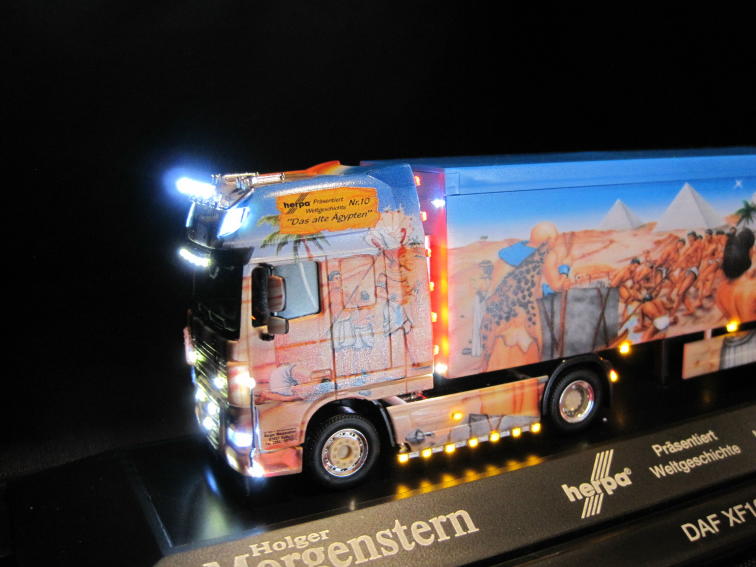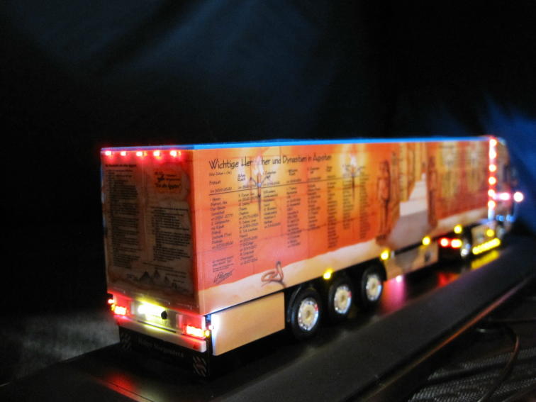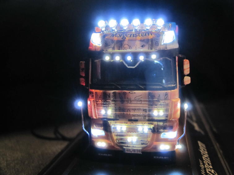 Abblend- und Rücklicht (ingesamt 6 LED), Dachscheinwerfer (10 LED), Nebelscheinwerfer (4 LED), seitliche Positionsleuchten (18 LED),