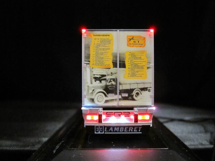 Rücklicht (4 LED), Frontpositionsleuchten (4 LED), seitliche Positionsleuchten (22 LED), Heckpositionsleuchten (8 LED), Nummernschildbeleuchtung (2 LED). |