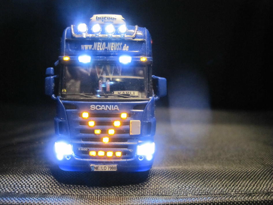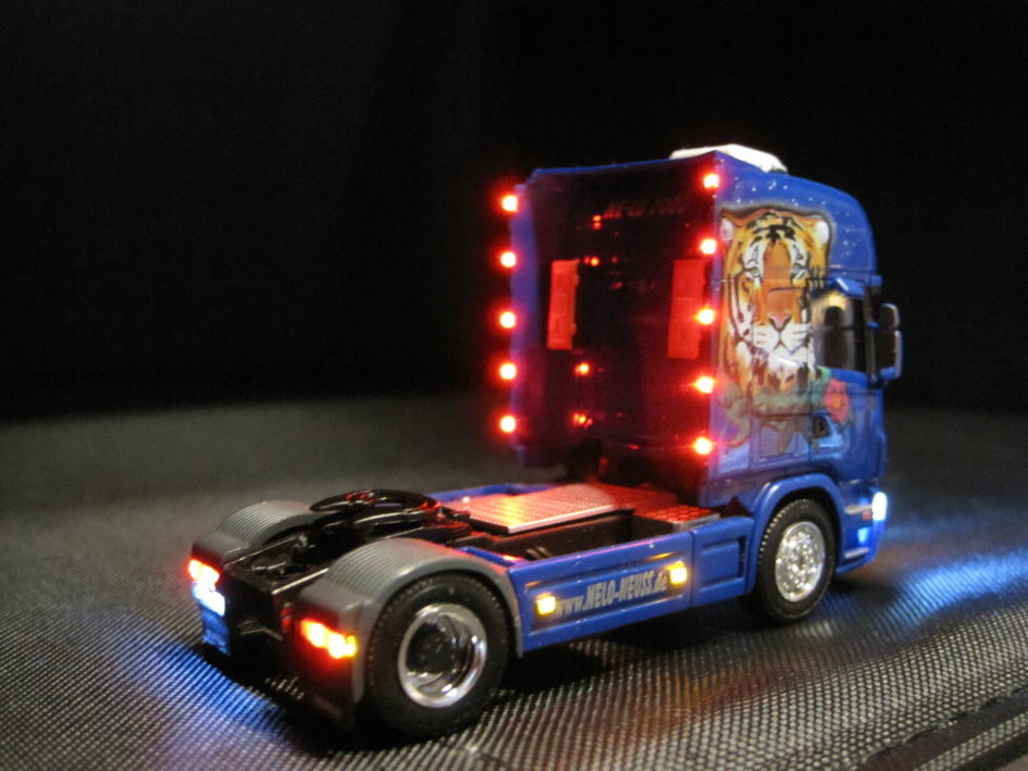 Abblend- und Rücklicht (ingesamt 6 LED), Dachscheinwerfer (6 LED), Nebelscheinwerfer (2 LED), seitliche Positionsleuchten (8 LED),